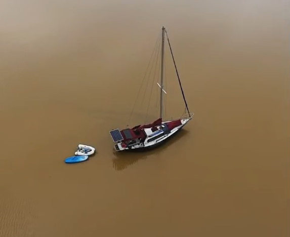 Moradores e visitantes notaram a alteração. O registro foi feito por pessoas que vivem a bordo de um veleiro e acompanharam de perto o escoamento de água, lama e sedimentos até o oceano.